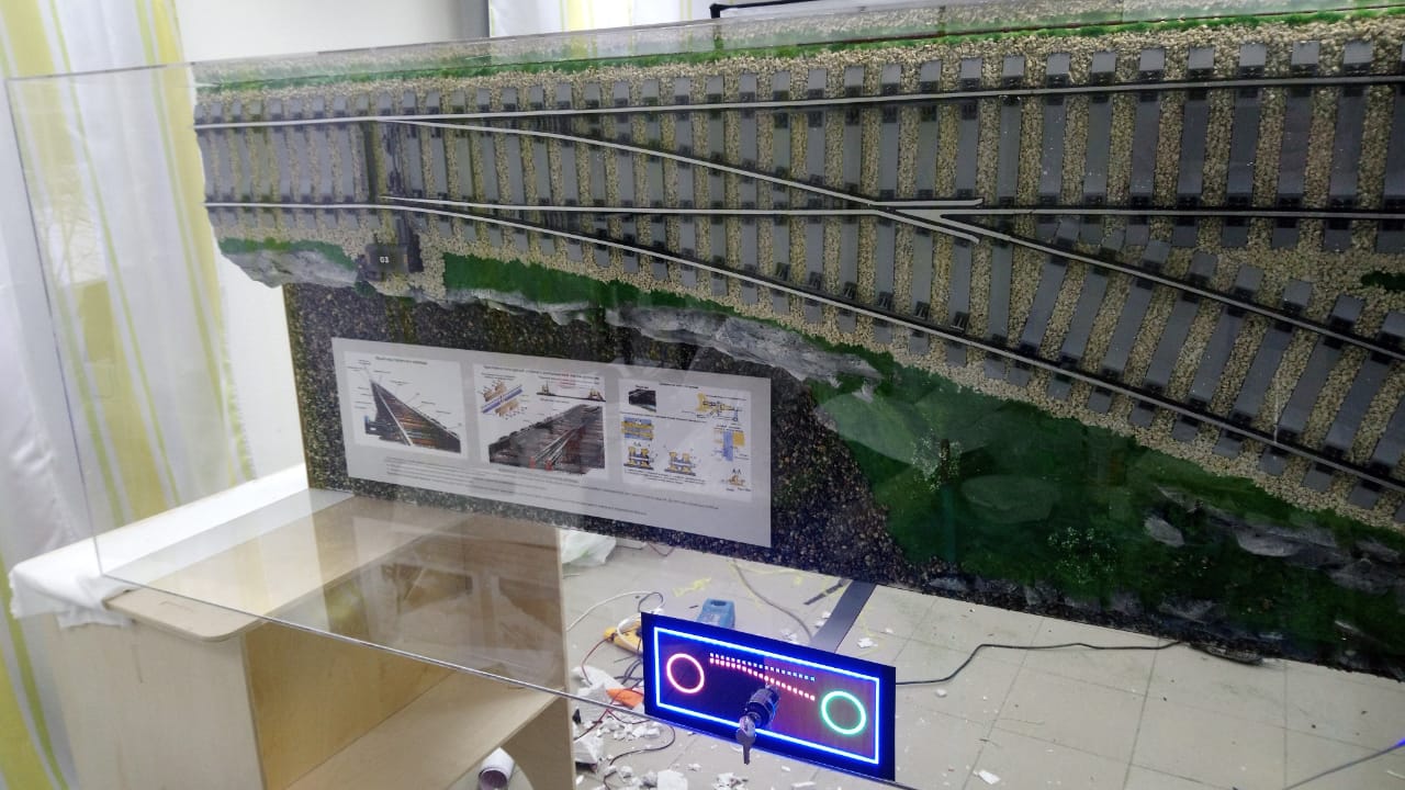 Действующий макет одиночного стрелочного перевода