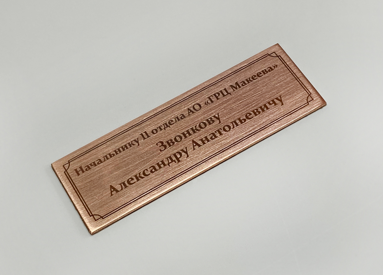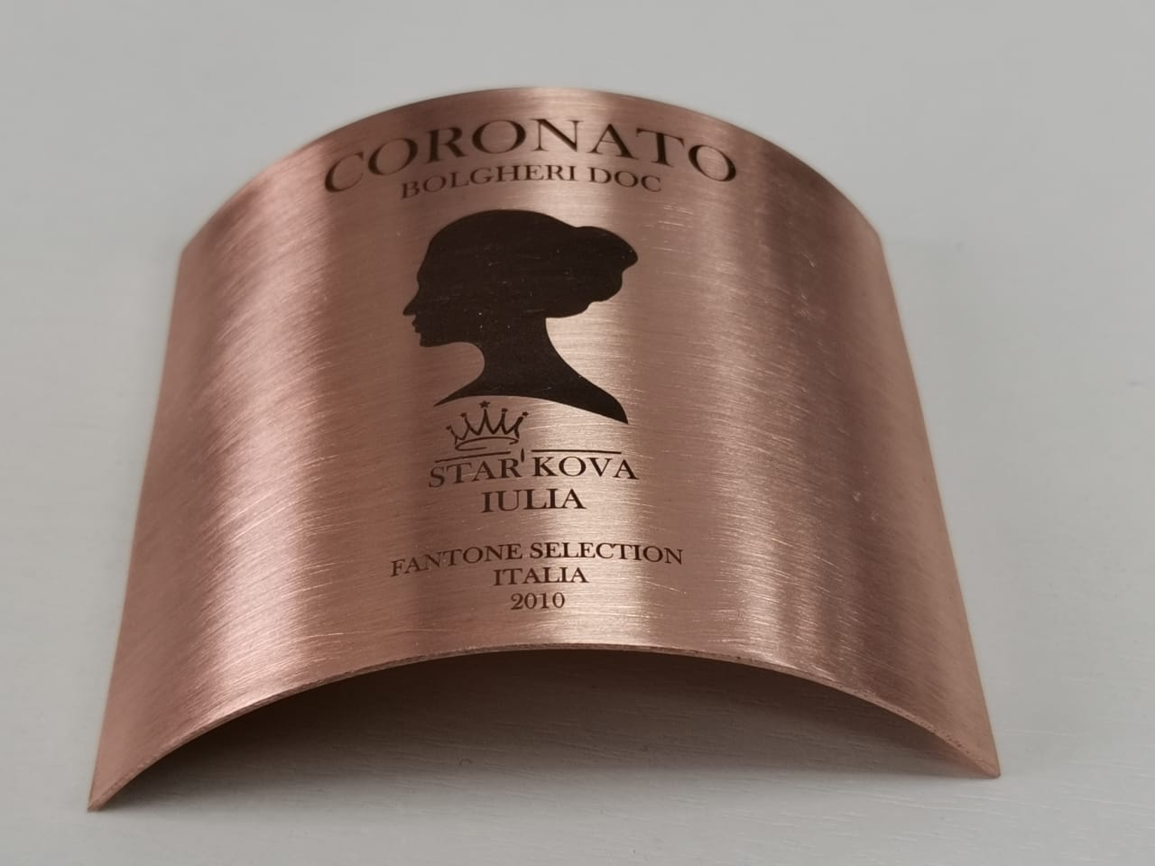 Изготовление и нанесение медных шильдиков на округлые формы.